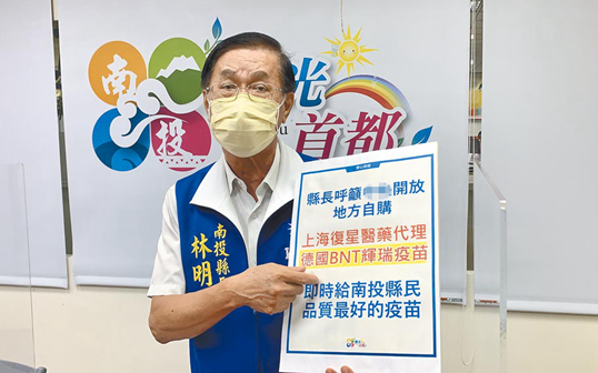 南投縣長林明溱25日表示,民進(jìn)黨當(dāng)局如果授權(quán),縣府將馬上行文申請,并動(dòng)用第二預(yù)備金,向上海復(fù)星醫(yī)藥采購30萬劑德國BNT輝瑞疫苗,讓縣民注射。