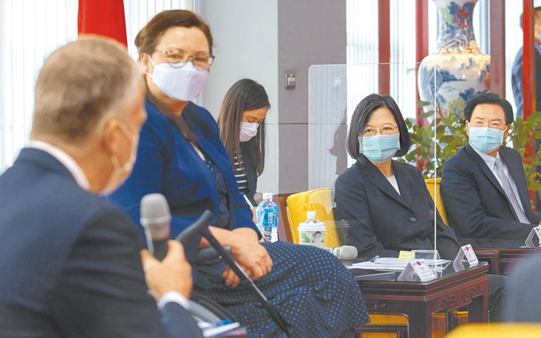 美國3位聯(lián)邦參議員6日率團(tuán)竄訪臺灣,并宣布美國將贈與臺灣75萬劑疫苗。(圖片來源:臺灣“中時新聞網(wǎng)”)
