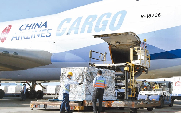 圖為臺(tái)灣華航日前載運(yùn)莫德納疫苗抵臺(tái)。(圖片來(lái)源:臺(tái)灣“中時(shí)新聞網(wǎng)”)