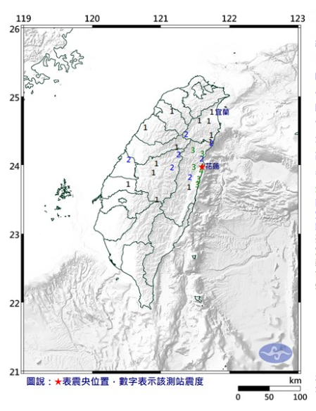 臺灣花蓮縣一早連續(xù)發(fā)生15起地震