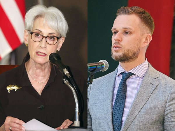美國副國務(wù)卿舍曼(左)13日與立陶宛外長蘭斯伯格斯(右)通話。(圖片取自臺媒)