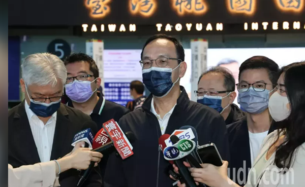 中國國民黨主席朱立倫(中)啟程赴美。(圖片來源:臺灣《聯(lián)合報(bào)》)