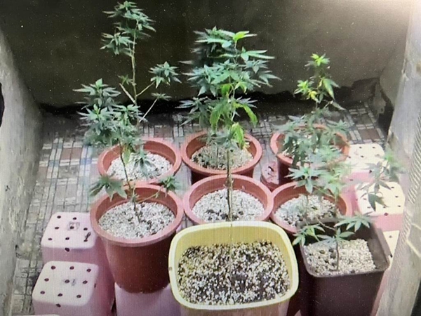 警方查獲許男的大麻園,起獲46株大麻活體株。(圖片取自臺媒)