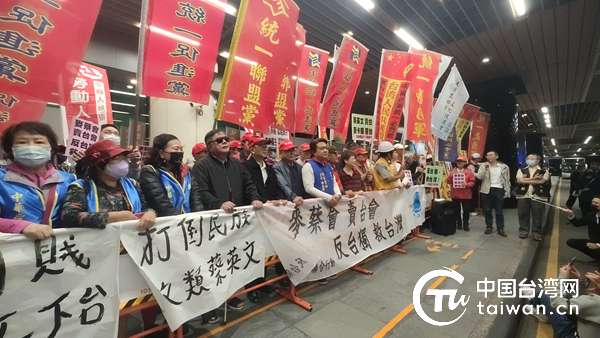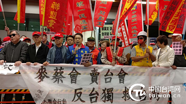 蔡英文4月7日晚返臺(tái),統(tǒng)派團(tuán)體組織近300人前往桃園機(jī)場(chǎng)進(jìn)行抗議,批判所謂“麥蔡會(huì)”是“賣臺(tái)會(huì)”。(中國臺(tái)灣網(wǎng)發(fā))