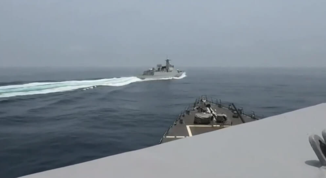 6月3日,美國(guó)“鐘云”號(hào)驅(qū)逐艦、加拿大“蒙特利爾”號(hào)護(hù)衛(wèi)艦強(qiáng)闖臺(tái)灣海峽,被我052D驅(qū)逐艦阻攔。美國(guó)與加拿大方面卻炒作稱(chēng),中國(guó)軍艦以危險(xiǎn)動(dòng)作攔截美艦,險(xiǎn)些釀成兩艦相撞事故。