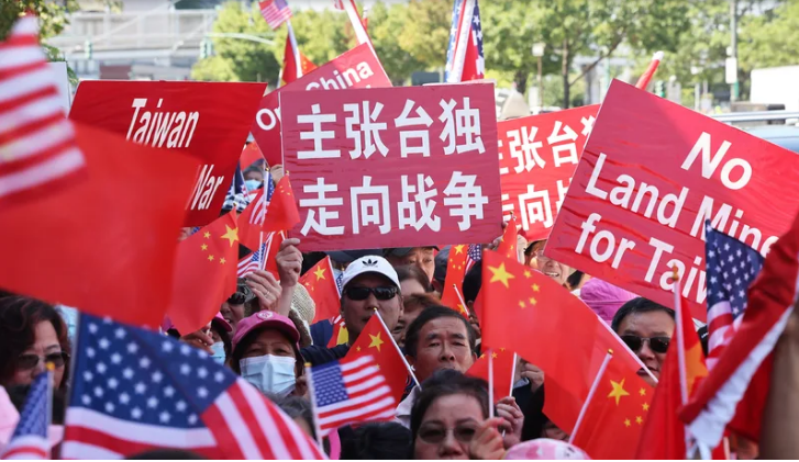 活動(dòng)開始前,上午就有僑胞團(tuán)體在場外集合抗議,高舉“反對‘臺(tái)獨(dú)’”“支持一個(gè)中國”“和平統(tǒng)一”及“反對‘臺(tái)獨(dú)’分子‘竄訪’美國”等標(biāo)語。被問到為何前來抗議,他們表示,“反對‘臺(tái)獨(dú)分子’賴清德竄訪美國”,并高喊,“賴清德滾出去”“臺(tái)灣是中國不可分割的一部分”。