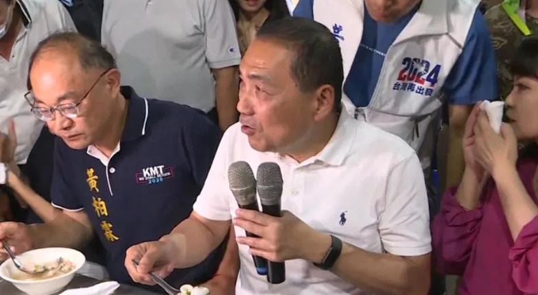 侯友宜在高雄逛夜市、吃小吃拜票。(圖片來源:臺灣“東森新聞”)
