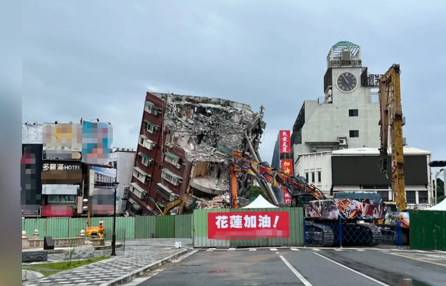 正在進行拆除工作的花蓮天王星大樓。(圖片來源:臺灣《聯(lián)合報》)
