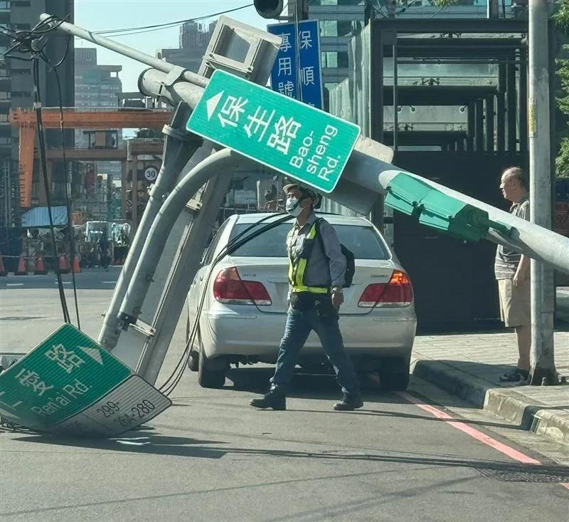 新北永和交通標(biāo)志桿傾倒險砸人車 現(xiàn)場畫面曝光