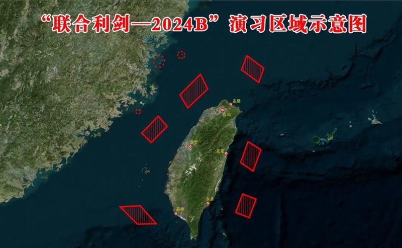 10月14日,中國(guó)人民解放軍東部戰(zhàn)區(qū)組織戰(zhàn)區(qū)陸軍、海軍、空軍、火箭軍等兵力,位臺(tái)灣海峽、臺(tái)島北部、臺(tái)島南部、臺(tái)島以東,開(kāi)展“聯(lián)合利劍-2024B”演習(xí),艦機(jī)多向抵近臺(tái)島,諸軍兵種聯(lián)合突擊,重點(diǎn)演練?諔(zhàn)備警巡、要港要域封控、對(duì)海對(duì)陸打擊、奪取綜合制權(quán)等科目,檢驗(yàn)戰(zhàn)區(qū)部隊(duì)聯(lián)合作戰(zhàn)實(shí)戰(zhàn)能力。