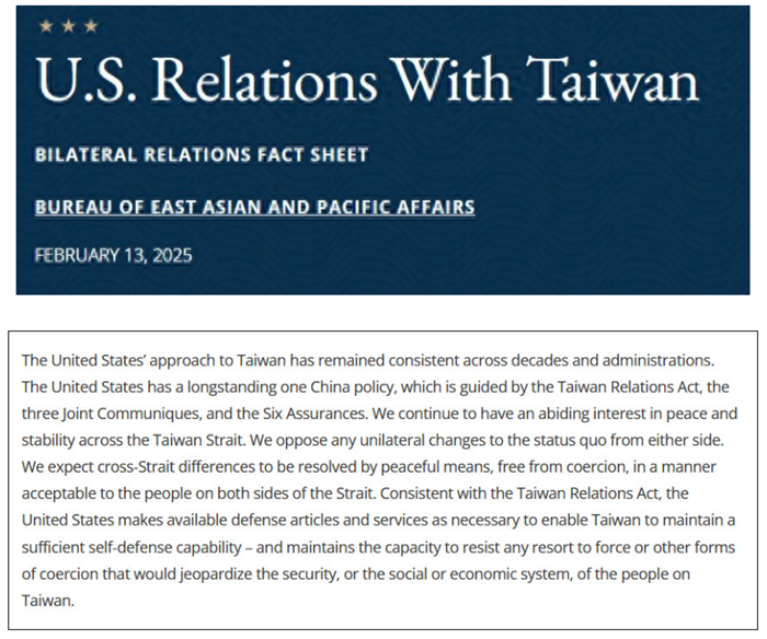 事實上,這已經(jīng)不是美國國務院網(wǎng)站首次修改相關涉臺表述,早在2022年5月,拜登執(zhí)政時期,美國國務院就曾刪除關于“承認臺灣是中國一部分”“美國不支持臺灣獨立”等表述,但在不到一個月后,美國國務院又重新加上了“不支持臺獨”“反對任何一方改變現(xiàn)狀”以及期盼“和平解決兩岸分歧”等內容。