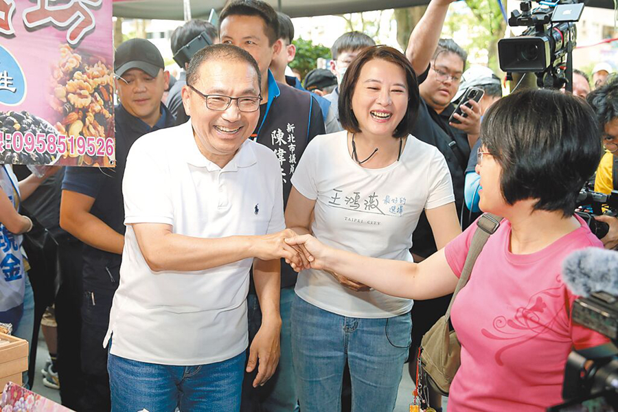 新北市長侯友宜跨區(qū)到臺北市陪民代王鴻薇掃街。(圖片來源:臺灣“中時新聞網(wǎng)”)