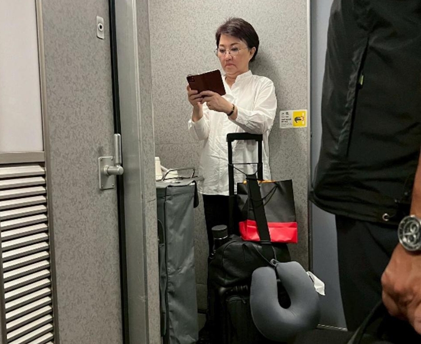 盧秀燕20日出席4場(chǎng)活動(dòng),橫跨臺(tái)北市、新竹、桃園等地。當(dāng)晚近10點(diǎn),她因錯(cuò)過(guò)原本班次而搭上高鐵自由座返回臺(tái)中。由于車廂座位已滿,她推著行李站在車廂角落,戴著眼鏡刷手機(jī)的照片被發(fā)上網(wǎng)。