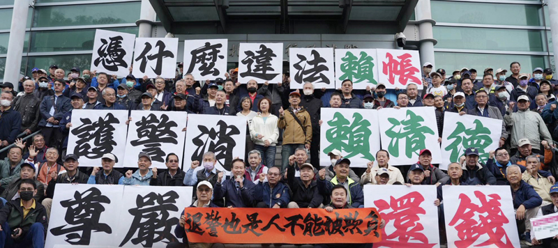 綜合臺媒報道,民眾黨當(dāng)日率近300名退休警消,舉行“護(hù)警消尊嚴(yán)、賴清德還錢記者會”。黃國昌表示,這場團(tuán)體訴訟不僅是退休警消要爭取權(quán)益與尊嚴(yán),更是捍衛(wèi)臺灣地區(qū)法治的訴訟。1月23日收件截止時,已受理超過2000件申請,成為臺灣地區(qū)有史以來人數(shù)最多、規(guī)模最大的一次,對當(dāng)權(quán)者提起的團(tuán)體訴訟。
