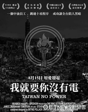 中油員工導(dǎo)致全臺停電,網(wǎng)友發(fā)揮創(chuàng)意制作偽電影海報。(圖/臺灣《東森新聞云》)