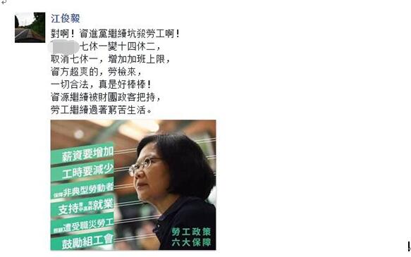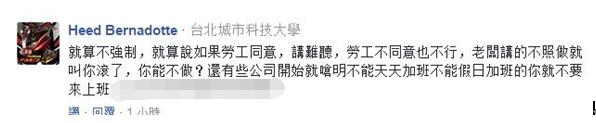 更有網(wǎng)友直言:“一例一休”讓“臺灣變成第二個日本指日可待了”。