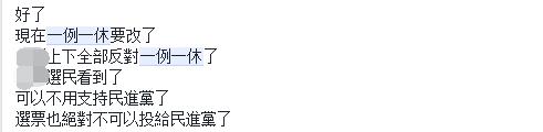 但更多是罵聲:“不是號稱最進步的‘立法’嗎?原來只是個笑話”“臺灣全部反對‘一例一休’不用支持民進黨了”;