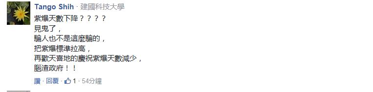 原本空氣質量指針(AQI)超過70毫克就是“紫爆”,但臺“環(huán)保署”將原有的空污檢測標準重調后變成超過150毫克才是“紫爆”。所以去年臺中市“紫爆”有99天,今年僅有19天……