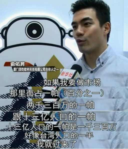 他們說(shuō):臺(tái)灣的市場(chǎng)跟規(guī)模小,業(yè)務(wù)沒(méi)有辦法拓展,大陸不僅市場(chǎng)大,“一帶一路”政策還讓他們有機(jī)會(huì)將自家業(yè)務(wù)拓展到世界;