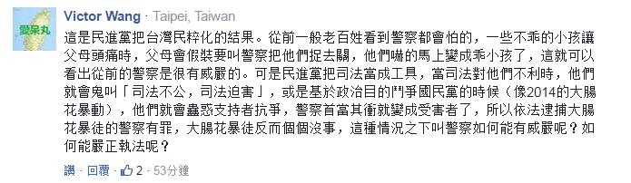 對此,也有臺灣網(wǎng)友發(fā)表了自己的看法:挺警察,必先“司法改革”;若想“司法改革”,民進(jìn)黨就得下臺!