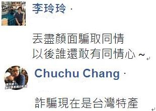 發(fā)文的這名網(wǎng)友表示“真的很丟臺灣人的臉!”,呼吁其他去大陸旅游的民眾要多注意,千萬別再受騙上當。也有許多臺灣人表示“詐騙現(xiàn)在是臺灣特產(chǎn)”“丟盡顏面騙取同情,以后誰還敢有同情心”。