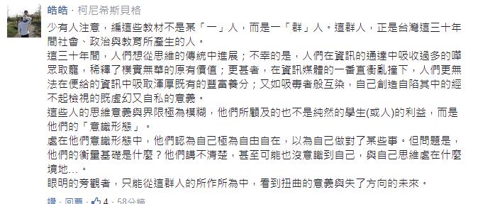 除了大人們對翰林版教材有不滿外,一些臺灣學生也認為該課程內(nèi)容很不適宜。