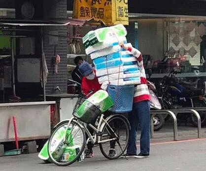 這下可不得了了,如今幾乎大半民眾都出動(dòng)到各大超市搶搬衛(wèi)生紙了,這也成了臺(tái)灣最“常見(jiàn)”也最“不正!钡娜粘oL(fēng)景了。