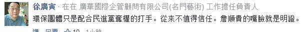 上了臺就變了臉,當了官就黑了心!火眼金睛的臺灣網友們一語道出真相,“所謂‘環(huán)保斗士’,當初是為民進黨執(zhí)政而斗,如今是為了民進黨利益與自己的官位而斗”、“詹順貴有了錢權之后,腦袋和屁股就對換了”。
