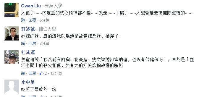 不過,網(wǎng)友對蔡宜珊將三位綠營大咖拖下水的做法倒是一片贊嘆,大呼其是蔡當局的“豬隊友”,還有人暗諷“好優(yōu)秀,不愧是狂妄的民進黨”、“‘血汗老板’薪火相傳,強有力打臉了詐騙黨”;更有網(wǎng)友一語道出蔡被民進黨開除黨籍的真相!