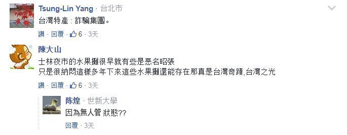 文章一出也是引發(fā)了廣泛熱議,有網(wǎng)友表示逛了20幾年的士林夜市,“就從沒(méi)買過(guò)這么貴的東西”;有人諷刺“果然是撒了金粉”、“臺(tái)灣最美的果然是人啊”、“臺(tái)灣特產(chǎn):詐騙集團(tuán)”;還有網(wǎng)友驚訝于很早就以水果貴“馳名”的士林夜市,如今宰客現(xiàn)象竟還沒(méi)改善……