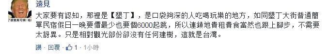 盡管有人認(rèn)為,像墾丁之類的熱門地,食宿等價(jià)格高是普遍現(xiàn)象,但店家動(dòng)輒就宰客的行為和心態(tài)對(duì)臺(tái)灣的觀光事業(yè)實(shí)在無(wú)幫助。