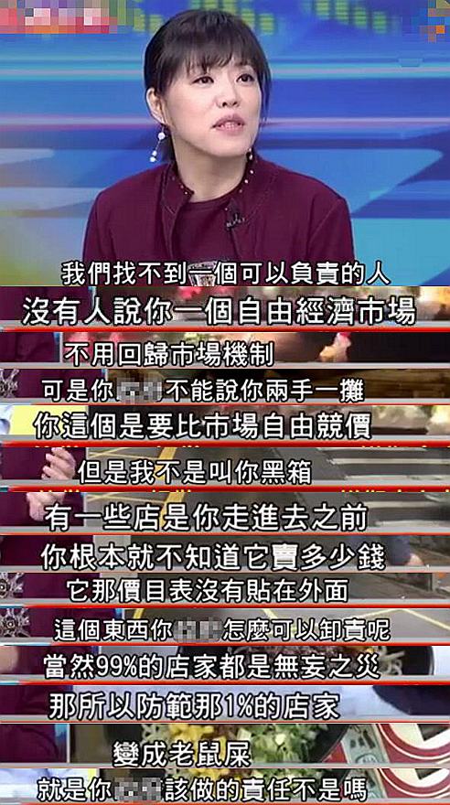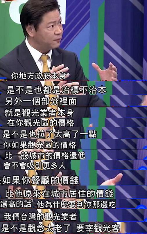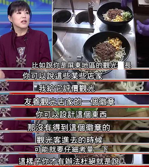 她認(rèn)為,為了防范1%的店家成為“老鼠屎”,各縣市相關(guān)部門可以為觀光客設(shè)計(jì)如“觀光徽章”之類的方法鑒別店家從商是否正派,“這才是執(zhí)政黨要做的事,而不是只會(huì)推卸責(zé)任”。