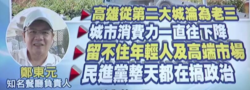 此外,在受訪時鄭東元還指出了高雄如今面臨的幾大問題:從過去全臺第二大城淪為老三,城市整體消費力持續(xù)下滑,留不住年輕人及高端市場……他直言,如今高雄的經濟出現(xiàn)了嚴重問題,而民進黨卻整天忙著搞政治,根本不關注基層百姓的經濟民生及招商引資,痛批“民進黨只會拼政治,不會拼經濟”!