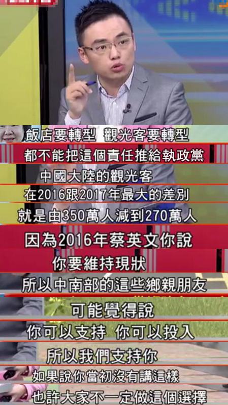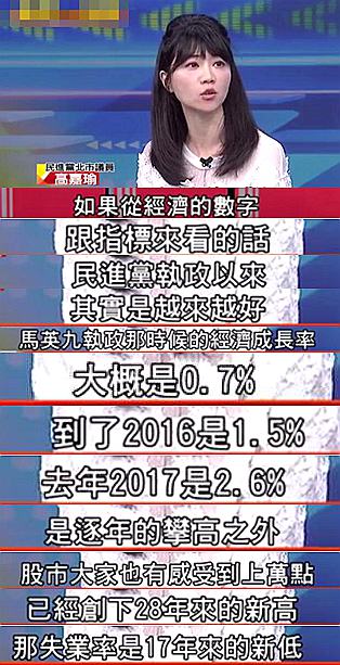 來看看這位民進黨議員是如何為“鐵票倉跳票”作解釋的吧:民進黨曾批判馬英九是“數字治臺”,而這個綠營小姐姐一上來就先祭出“數字陣”,說從經濟指數上看,民進黨與馬英九執(zhí)政時期好很多了啊;之后拿出“甩鍋招”,說飯店倒閉有很多方面的原因啊,店家不要都怪到民進黨身上,你們自己也要轉型;接著開始“數政績”,說陸客雖然不來了,但日本和東南亞客人有增加啊,而且像臺中市長林佳龍之類的也有積極的幫地方在招商;最后搬出“誠懇臉”,表示雖然民進黨做了很多“復興經濟”的事,但若人民感受不到,那蔡當局也會“好好檢討”……