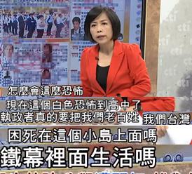 萬萬沒有想到,如今在民進(jìn)黨執(zhí)政的臺灣,“綠色勢力”、“白色恐怖”不僅席卷了如臺大一般的大學(xué),更蔓延到了高中,知名政論節(jié)目主持人黃智賢為此驚呼“怎么會這么恐怖”!