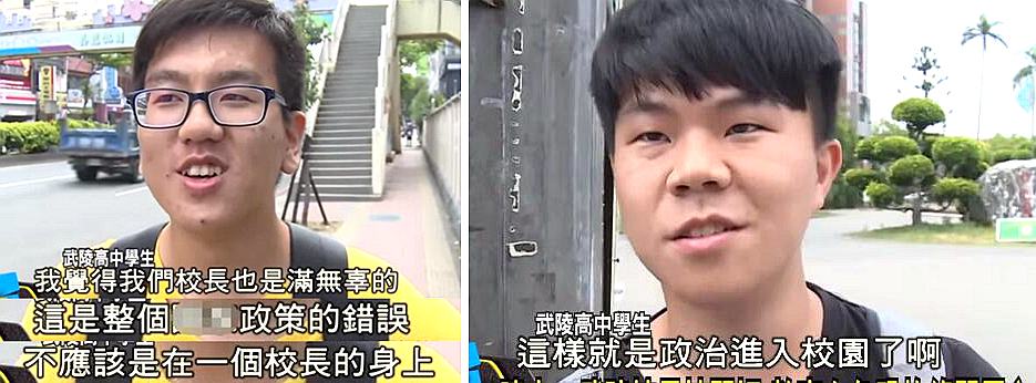 學(xué)生也是紛紛為自家校長喊冤,“這根本是政策的錯誤”、“這樣不就是政治介入校園了”。