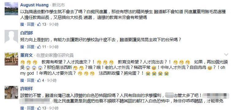 網(wǎng)友們聞此不僅直言“不會以為搞這些動作學(xué)生就不去了吧”,更嘆:臺灣是沒有言論自由了嗎?