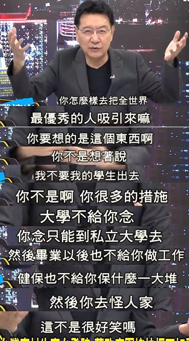 趙少康認(rèn)為,臺當(dāng)局與其怪別人、設(shè)障礙,不如好好去想想怎么才能把世界人才吸引到臺灣來;