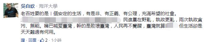 臺企聯(lián)榮譽會長丁鯤華則表示,“不要被‘愛臺灣’所綁架”是許多臺商的看法。他指出,臺灣經(jīng)過國、民兩黨的執(zhí)政,20多年來經(jīng)濟不僅沒有變得更好,還比日本失落的20年更失落,“許多臺商都在思考,‘臺灣體制’是否出了問題?”,他認為如果需要一個政黨來真正“把臺灣失落的20年撿回來”,可能共產(chǎn)黨的手法、能力、實際經(jīng)驗,會遠遠優(yōu)于國、民兩黨,“所以思考第三條路,或許對臺灣的未來發(fā)展是有幫助的”。