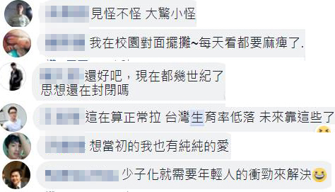 沒想到許多網(wǎng)友看到照片都不意外,紛紛淡定表示“見怪不怪,大驚小怪”“想當初的我也有純純的愛”“少子化就需要年經(jīng)人的沖勁來解決”。