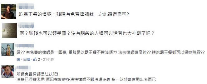 網友們紛紛替店家不平,稱“吃霸王餐的慣犯,殘障有免費律師就一定贏官司?”也有人諷刺說“沒有腦袋的人還可以活著也太神奇了吧?”。
