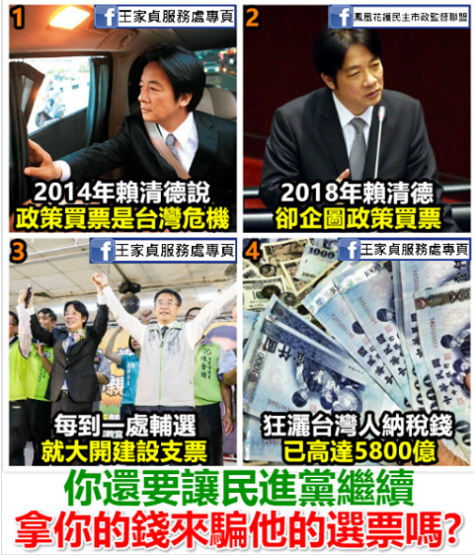 “(臺(tái)灣選舉)用鈔票換選票的思惟并沒(méi)有改變。最低層級(jí)的是候選人買票;再來(lái)是縣市長(zhǎng)候選人,不分藍(lán)綠開(kāi)空頭支票,加起來(lái)每年總共要多支出七百多億元(新臺(tái)幣,下同)!