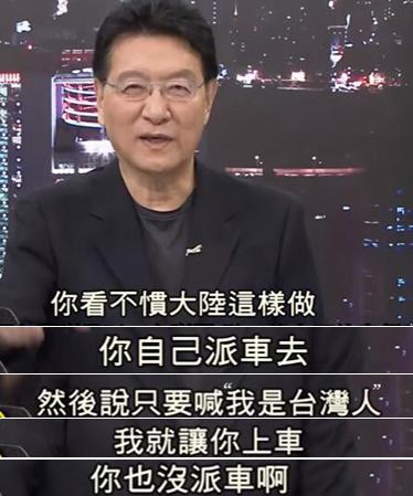 臺灣政論節(jié)目主持人趙少康為此向陸委會喊話諷刺道,你也可以喊“我是臺灣人”就讓你上車啊,但事實(shí)是你根本沒派車嘛~
