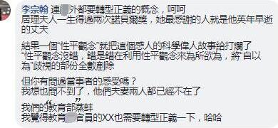 還有批評臺“教育部”根本就是“唯我獨尊的霸權(quán)心態(tài)”、“不尊重歷史文化,卻還奢談‘性別尊重’?”;