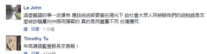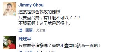 有人表示,照這種辦活動(dòng)的花法,再多治水預(yù)算也不夠!有人質(zhì)疑,肯定不是只有屏東這樣,高雄和臺(tái)南也該查查!有人諷刺,這就是“綠色執(zhí)政”的榜樣!還有人怒指,民進(jìn)黨不死,臺(tái)灣穩(wěn)死!