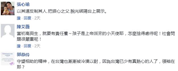 此案曝光后,全臺網(wǎng)友的怒火也都被點(diǎn)燃了,有人怒言就該把這狠心的父親也脫光綁在陽臺上展示!