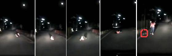 沒想到該女子竟不死心,先是向左翻了一圈,眼見原PO沒反應(yīng),又向右滾了兩圈,還一手將鞋子丟出,想營造車禍現(xiàn)場,但原PO依舊完全不為所動……后來女子實(shí)在演不下去了,加上場面太尷尬,只好起身小跑步逃離現(xiàn)場。過程中,女子一度想轉(zhuǎn)身撿回鞋子,但見原PO還在,只好頭也不回繼續(xù)跑,最后消失在黑暗中。