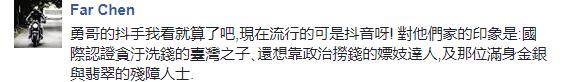 因“重病”而保外就醫(yī)的阿扁,出獄后只有在面對鏡頭時才會上演“影帝級”的“手抖”戲碼,其余的時間也并沒有忙著治病,而是頻頻介入政局,不僅為參選高雄市議員的兒子陳致中上臺造勢,還接受了日本媒體的訪問,又開了個人臉書化身“勇哥”“勇弟”大談?wù)尾徽f,更幾次三番的公然挑釁蔡英文當(dāng)局……10日陳水扁又因接到“雙十慶典”邀請函卻被“高層”勸導(dǎo)不能與會一事而再次“龍顏震怒”,上演了大罵蔡當(dāng)局“裝肖維(肖維:瘋子,神精病)!”的一幕。