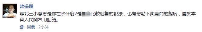 不過,檢察官卻替洪女解釋了下,稱其罵人詞語中“靠北”,實(shí)則代表不屑他人叫苦或抱怨,而“三小”則是臺(tái)語的“什么”的意思,所以從臺(tái)語翻譯過來“靠北三小”的實(shí)際意思為“吵什么吵”,沒有侮辱的意思,因此不起訴洪女。