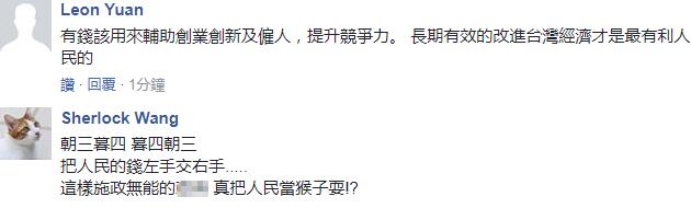 針對(duì)要編列預(yù)算補(bǔ)助月薪3萬以下的民眾,不少網(wǎng)友覺得很是不公、紛紛抗議:明明繳稅都是月薪3萬以上的人,能領(lǐng)“經(jīng)濟(jì)紅利”的卻是月薪3萬以下的人,這公平嗎?